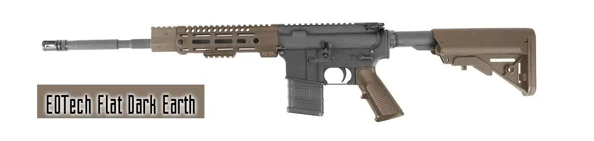 Colors: Desert Warrior Dark Earth, Magpul Flat Dark Earth, Vltor Flat Dark Earth, TangoDown Flat Dark Earth, Leupold Dark Earth, XD Dark Earth, EOTech Flat Dark Earth, Tapco Dark Earth, Trijicon Dark Earth Brown, GLK Dark Earth Late Model, Daniel Defense FDE, GLK Dark Earth Early Model, ERGO Dark Earth, Accuracy Intl. Dark Earth, Urban Dark Earth